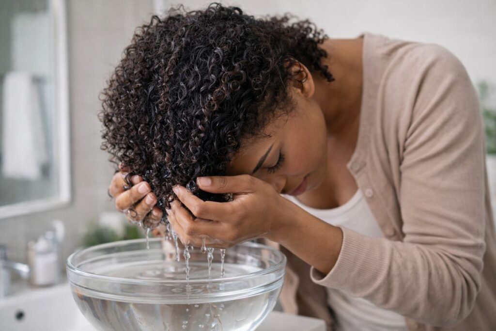 Connaissez-vous la « bowl method » ? On trempe ses boucles dans un bol d’eau après le soin. Puis, on scrunche au-dessus du récipient pour réinjecter l’eau dans la fibre.