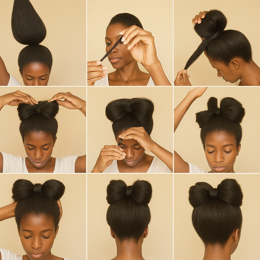- Divisez le chignon en deux sections pour créer les « oreilles » du nœud